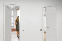 Wirkung kann nicht nur über die Gestaltung der Türblätter erziehlt werden. Mit der Wand bündig eingebaute Zargen oder in die Leibung öffnende Türen ermöglichen vollkommen neue Möglichkeiten.